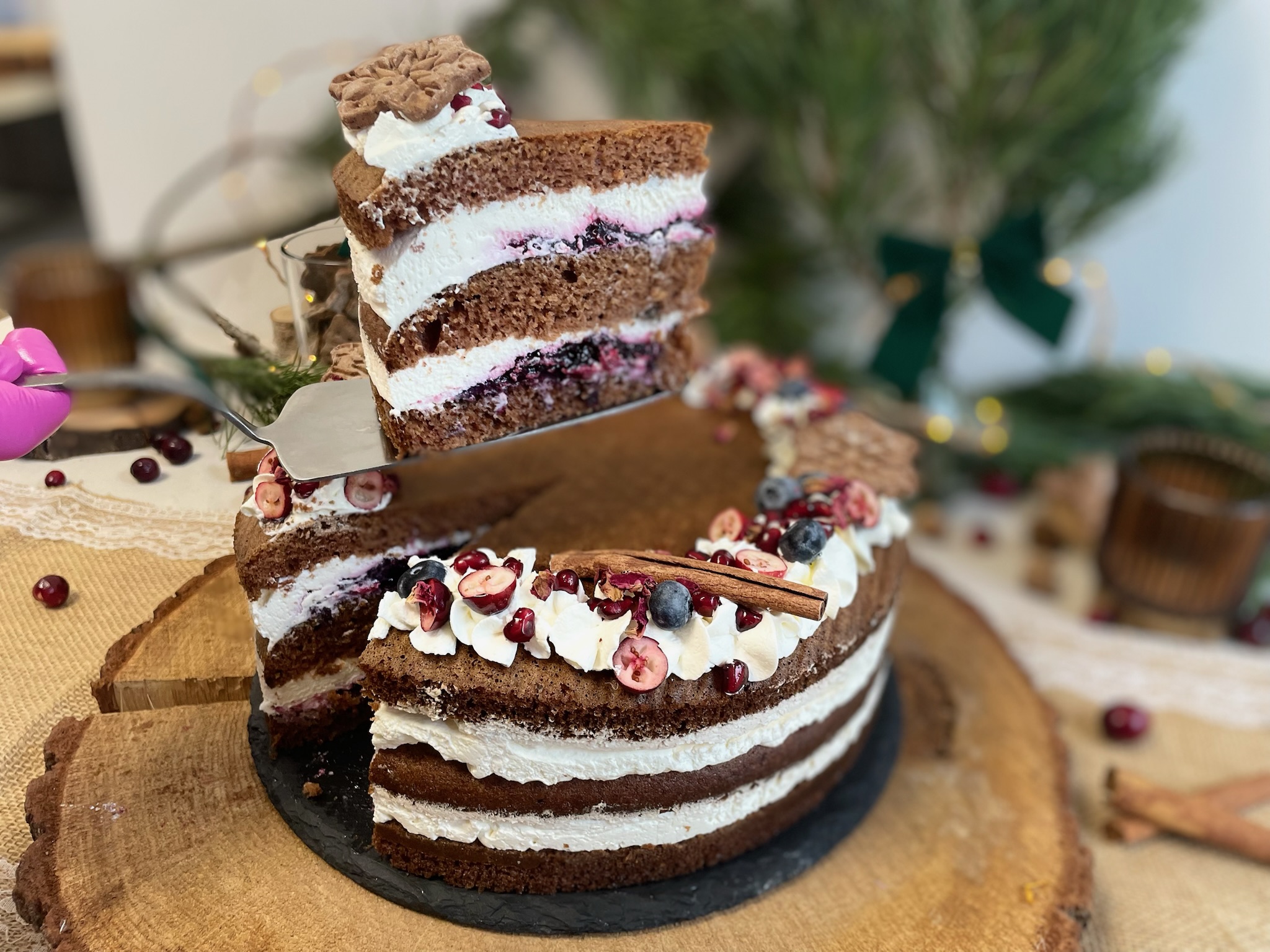 1/4 torciku dyniowego z konfiturą z owoców leśnych i kremem śmietankowym