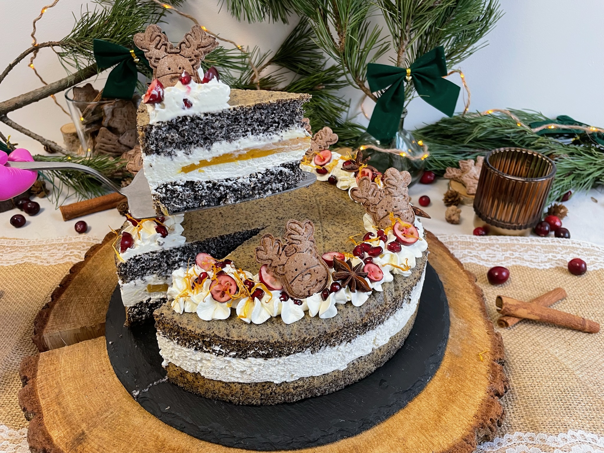 1/4 torciku makowego z żelką mango i kremem śmietankowym