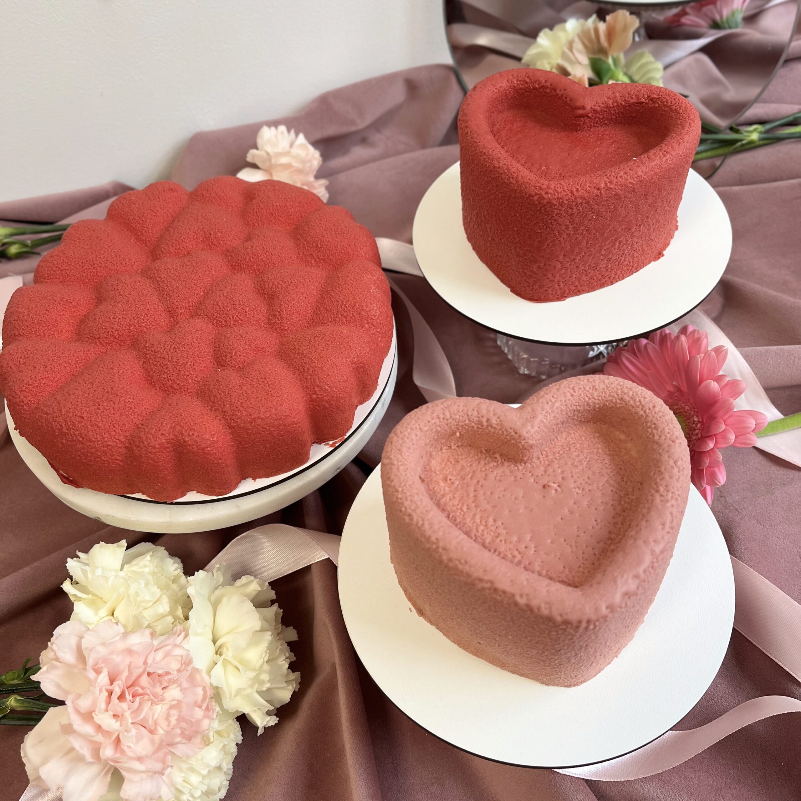 Musowe torciki w kształcie serca stworzone na Dzień Kobiet.