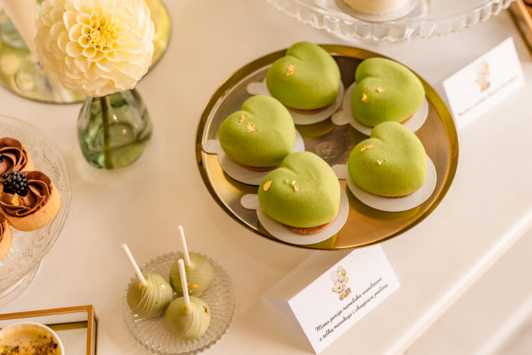 Podczas aranżacji słodkich stołów kładziemy duży nacisk na detale i estetykę prezentacji, aby każdy deser nie tylko smakował wyjątkowo, ale również pięknie się prezentował. Proces tworzenia każdego słodkiego stołu zaczyna się od wybrania koncepcji, która najlepiej oddaje charakter wydarzenia i oczekiwania klienta. Następnie, z dużą dbałością o szczegóły, wykonywane są poszczególne desery, które razem tworzą spójną i przyciągającą wzrok całość.